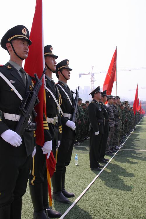 上午10時(shí),點(diǎn)驗(yàn)大會(huì)在嘹亮的軍歌聲中拉開序幕。預(yù)備役官兵軍容嚴(yán)整,雄姿勃發(fā),精神抖擻,士氣高昂,充分展示了當(dāng)代預(yù)備役軍人的良好精神風(fēng)貌,展現(xiàn)了部隊(duì)良好的軍政素質(zhì)和優(yōu)良的戰(zhàn)斗作風(fēng)。3名儀仗隊(duì)員護(hù)衛(wèi)著軍旗,邁著矯健的步伐從主席臺(tái)南側(cè)走到隊(duì)列北側(cè)。1500余人的預(yù)備役軍人身著整齊的軍裝,按照各自編制,在操場(chǎng)排成整齊的方隊(duì),接受了首長(zhǎng)的檢驗(yàn)并進(jìn)行了宣誓儀式。點(diǎn)驗(yàn)結(jié)束后,預(yù)備役官兵進(jìn)行了擒敵拳、盾牌警棍術(shù)和防爆隊(duì)形等三個(gè)科目的匯報(bào)演示。通過(guò)集結(jié)點(diǎn)驗(yàn),鍛煉提高了團(tuán)首長(zhǎng)機(jī)關(guān)和營(yíng)連各級(jí)指揮員的組織協(xié)調(diào)能力,探索研究了組織全團(tuán)集結(jié)點(diǎn)驗(yàn)的方法路子,錘煉了部隊(duì),強(qiáng)化了作風(fēng),有效提高了部隊(duì)快速動(dòng)員和隨時(shí)應(yīng)召的能力。